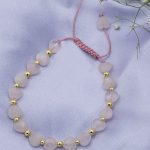 دستبند سنگ _ قلب رز کوارتز با دانه های طلائی