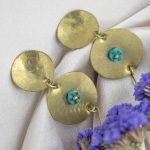 گوشواره آویز برج دو دایره و نگین سنگ فیروزه طرح گل