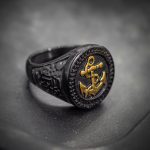 انگشتر مردانه _ استیل _ مشکی _ طرح لنگر _سایز 12