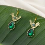گوشواره آویز برنج _ مرغ آمین _ نگین الماسی سبز