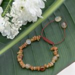 دستبند سنگ _ خورد سنگ کوارتز زرد و 7 سنگ کوارتز زرد برش گرد