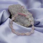 دستبند سنگ _ تراش جواهری رزکوارتز _ با بافت صورتی