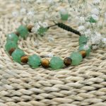 دستبند سنگ _ تراش جواهری اونتورین و دایره چشم ببر سایز 4 _ بند سبز