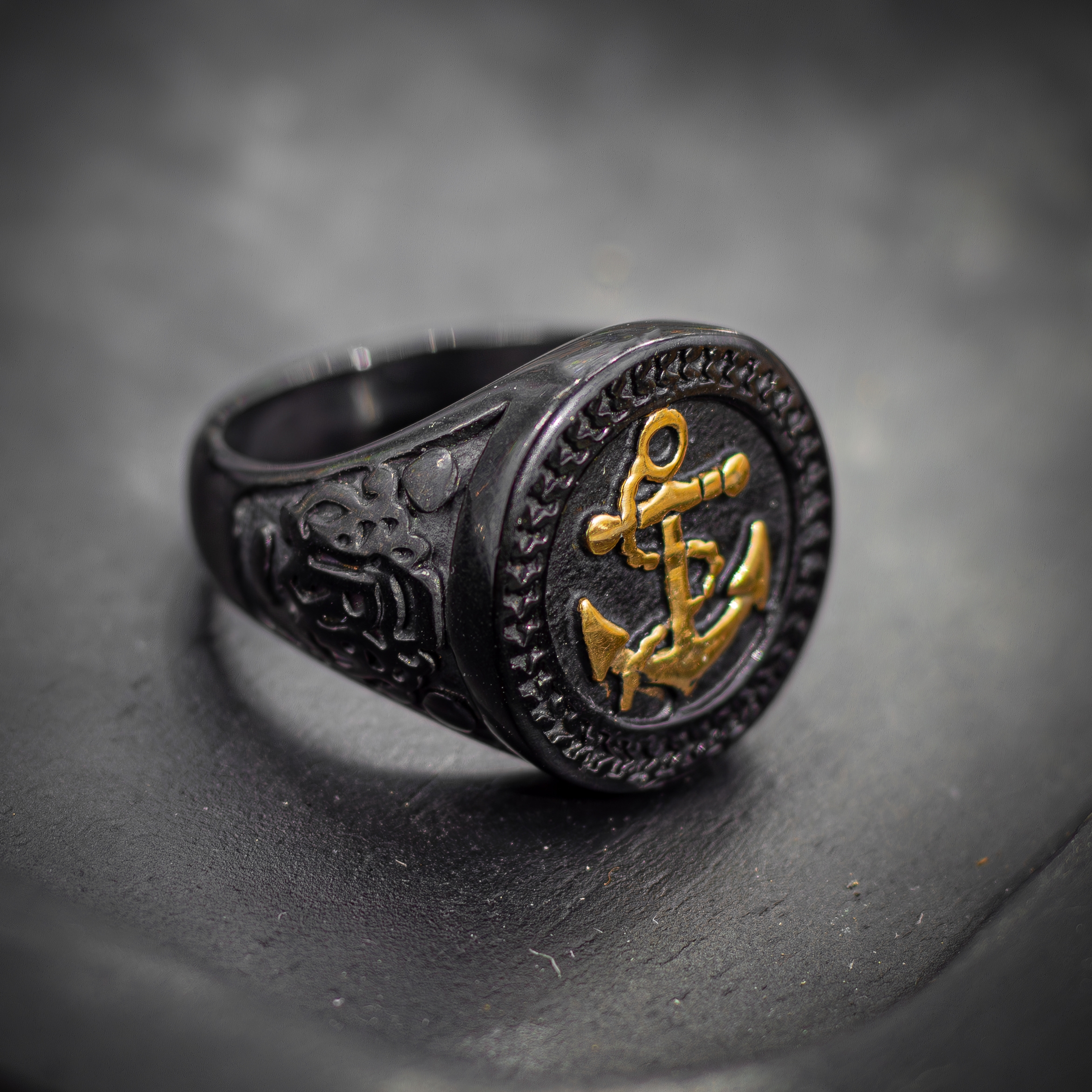انگشتر مردانه _ استیل _ مشکی _ طرح لنگر
