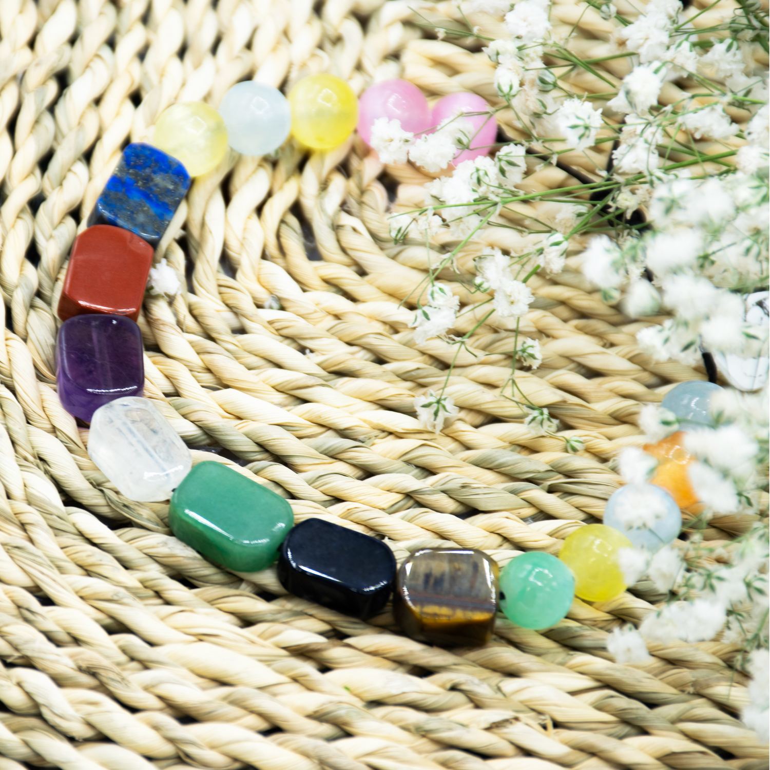 هر سنگ در این ترکیب، با رنگ و انرژی خاص خود، به تعادل یکی از مراکز اصلی انرژی بدن کمک می‌کند و در کنار هم، فضایی از آرامش، تمرکز و آگاهی می‌سازند.
