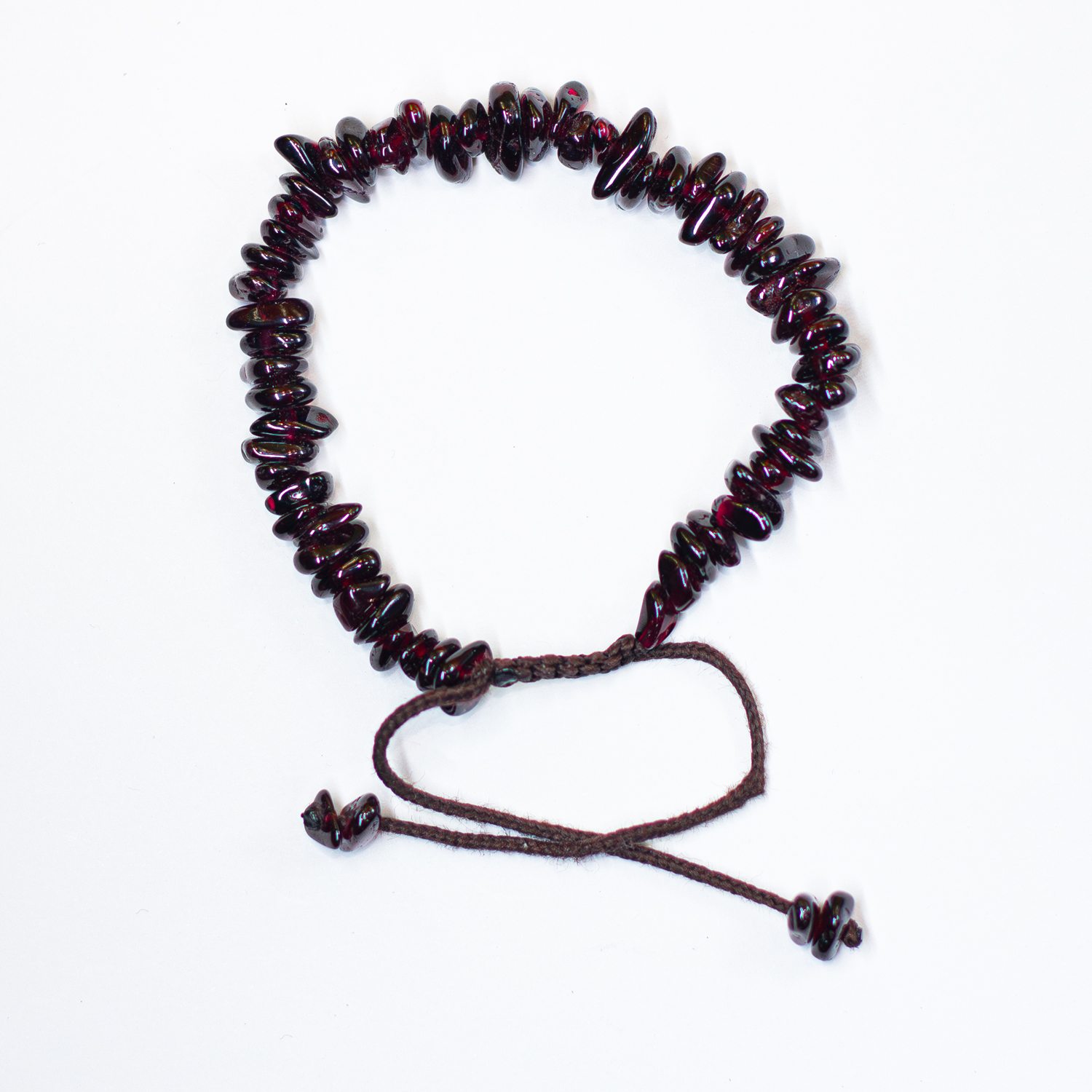 این دستبند با **سنگ‌های طبیعی خورده‌شده‌ی گارنت** طراحی شده تا بافتی خاص، لطیف و در عین حال پرقدرت روی مچ تو ایجاد کند. رنگ قرمز تیره‌ی آن با جلوه‌ای مخملی، برای استایل‌های مینیمال، احساسی یا بوهو انتخابی بی‌نقصه.