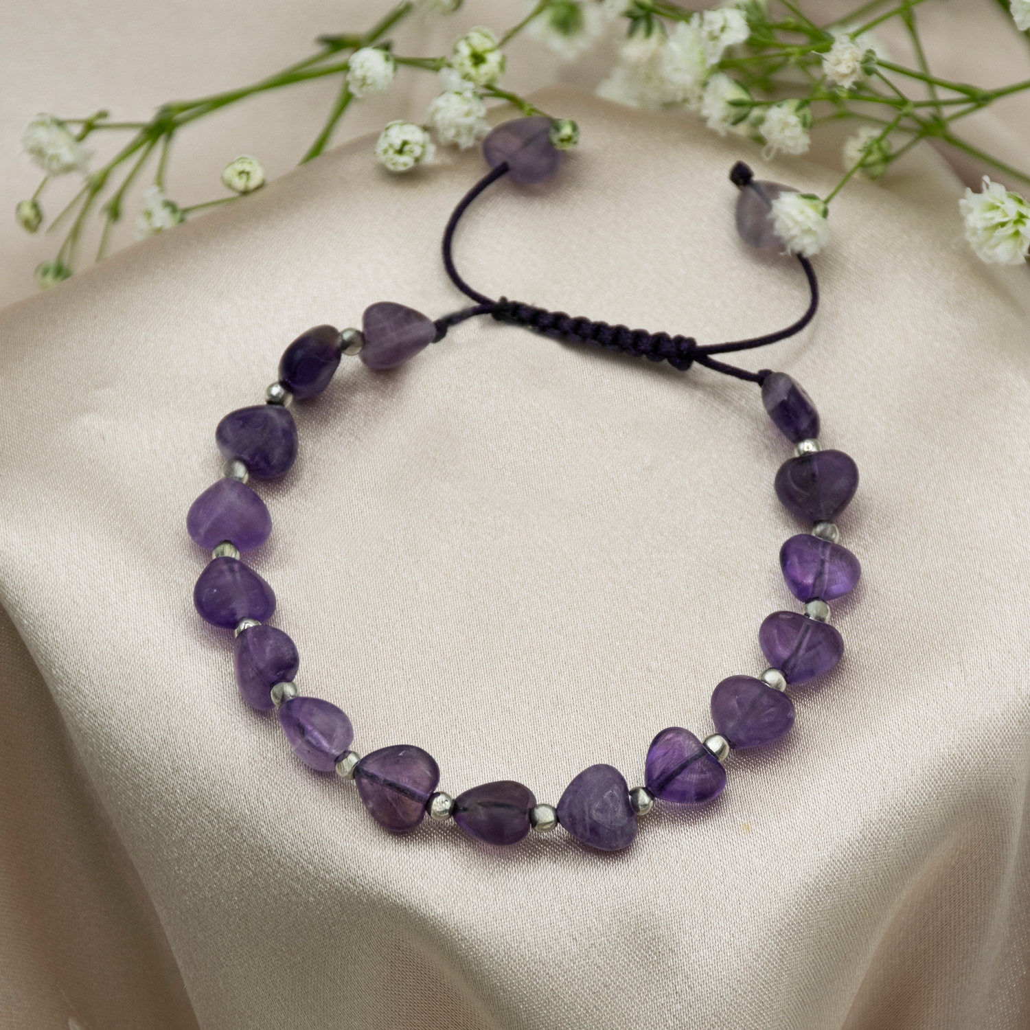 💜✨ دستبند آمیتیس با تراش قلب‌های ریز – آرامش در ضربان احساس