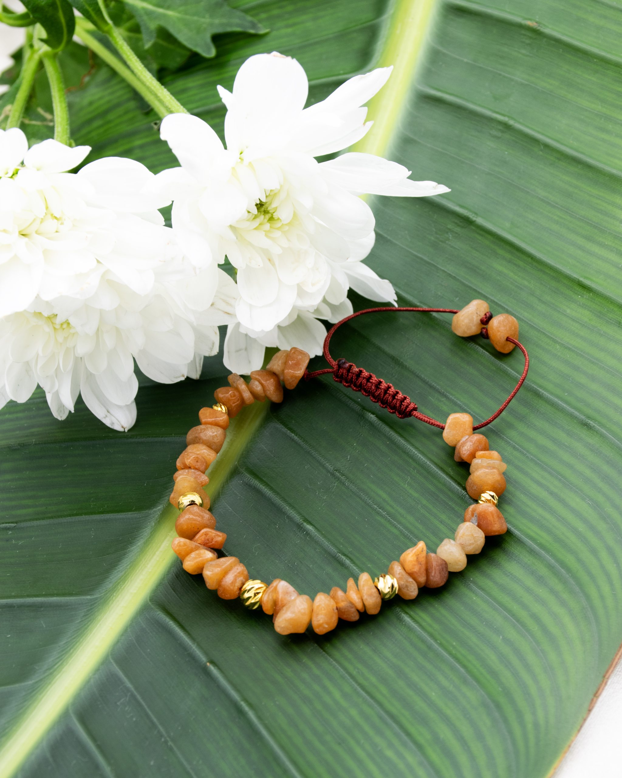 این دستبند از خورده سنگهای طبیعی کوارتز زرد ساخته شده؛ سنگی با رنگ گرم و آفتابی که نماد شادی، امید و انرژی مثبت است.