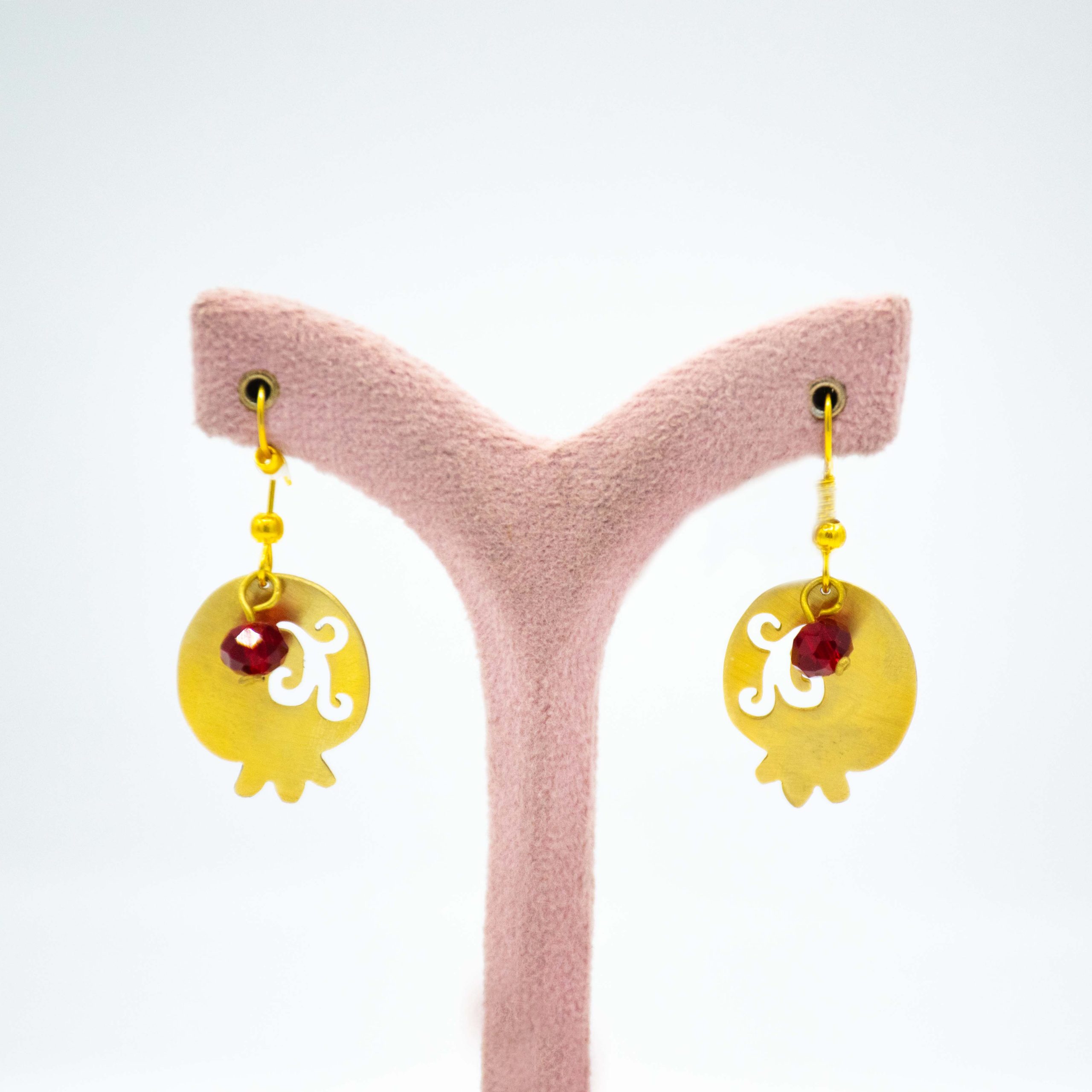 گوشواره آویز “راز انار”: برنج دستساز با نگینهای درخشان دانه انار