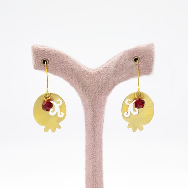 گوشواره آویز “راز انار”: برنج دستساز با نگینهای درخشان دانه انار