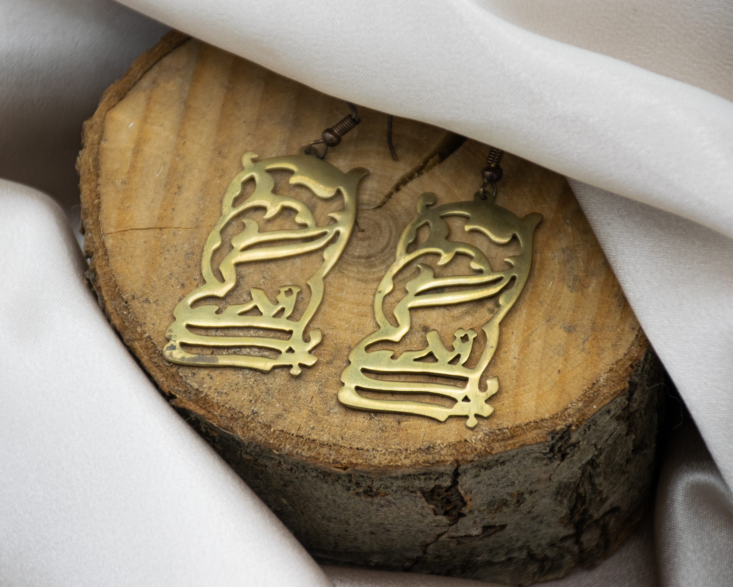 گوشواره آویز برنج طرح هور نوشته زندگی