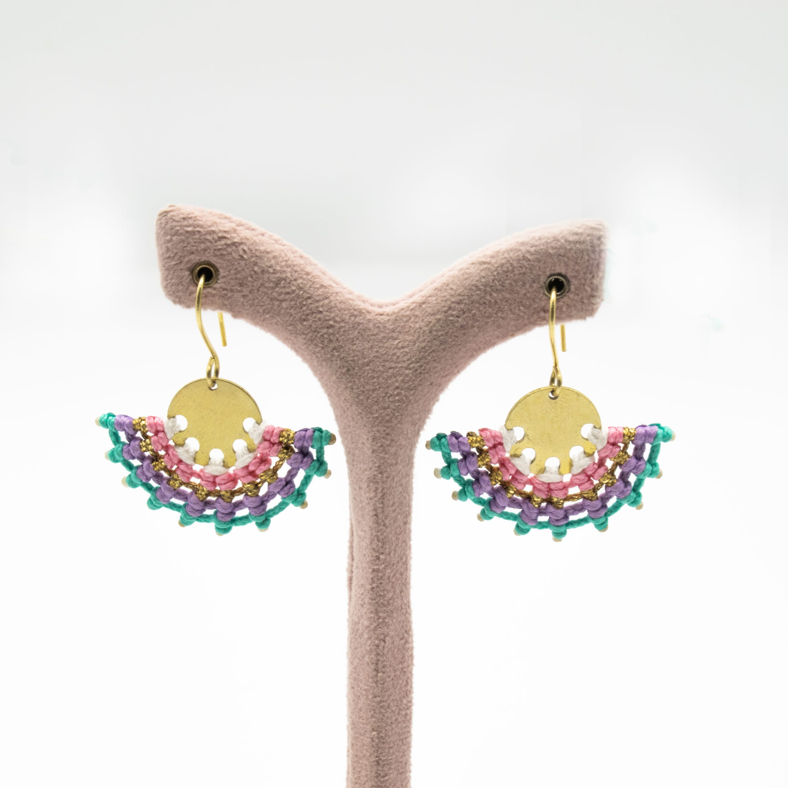 گوشواره آویز برنج _ دایره _ بافت سایز 1 _ (صورتی-طلائی-بنفش-سبز)