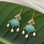 گوشواره آویز برنج _ طرح گل _ نگین بیضی فیروزه _ آویز مرواریدی