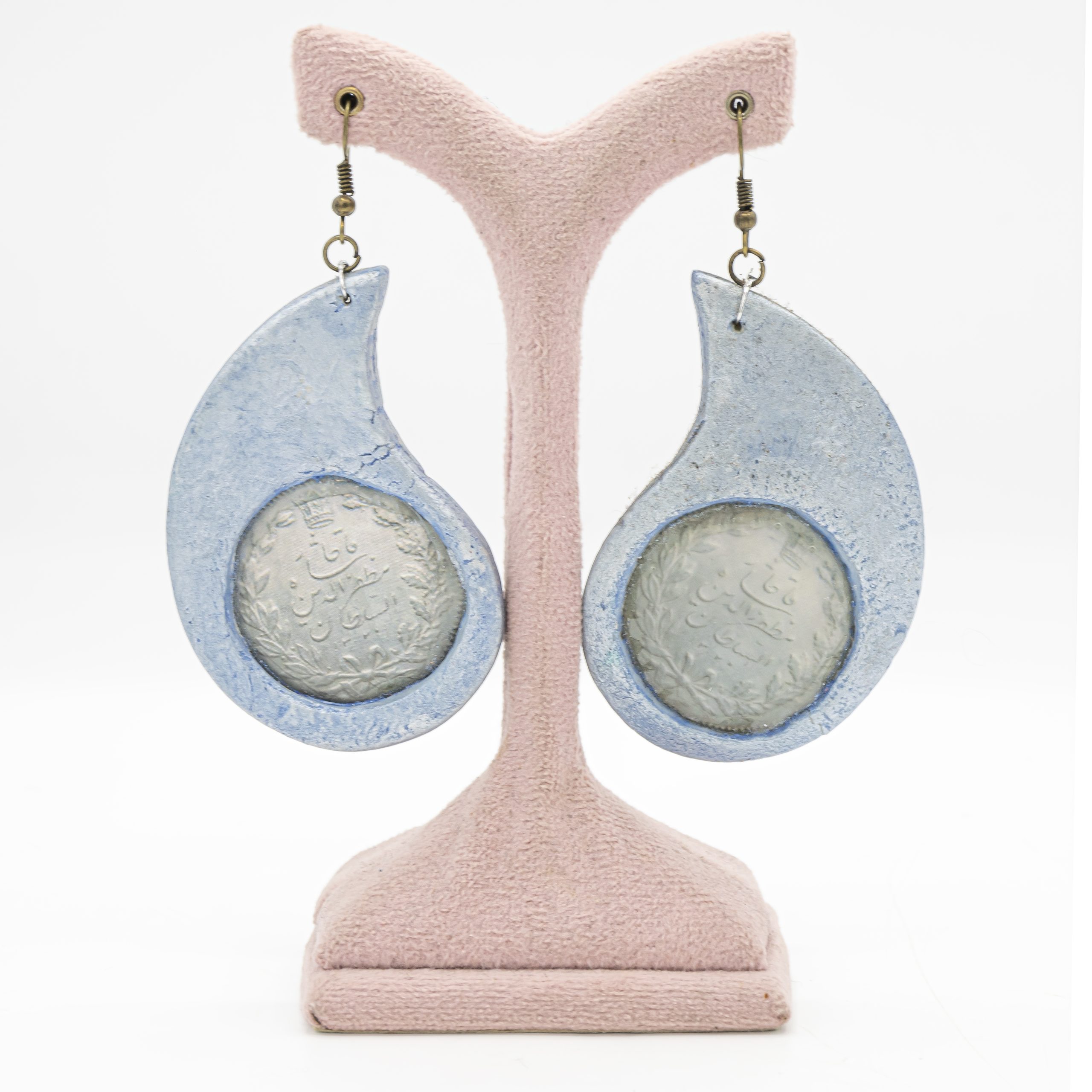 گوشواره سفالی _ اشک _ طرح قاجار _ رنگ دلفینی